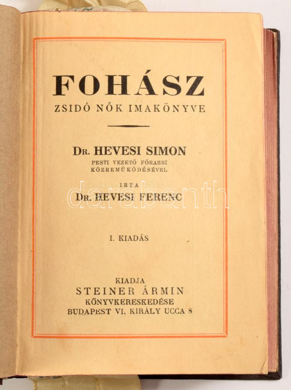 Ajkaink esedezései. Imádságok az esztendő minden napjára. + Fohász. Zsidó nők imakönyve. Bp., Steiner Ármin. Egészvászon kötésben, kopottas állapotban.