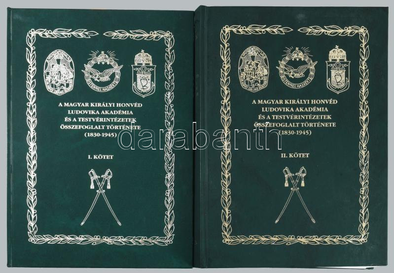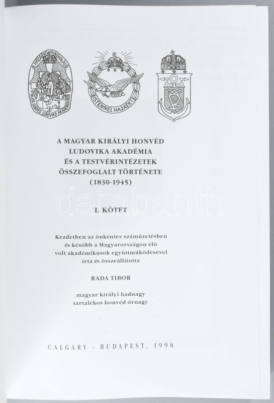 A Magyar Királyi Honvéd Ludovika Akadémai és a testvérintézetek összefoglalt története (1830-1945) I-II. kötet. Írta és összeállította Rada Tibor. A kiadó vezetője, vitéz Bánkuty E. Géza által Dömötör Zoltán (1935-2019) olimpiai bajnok vízilabdázó, úszó részére részére DEDIKÁLT példány. Bp.-Calgary, 1998-2001, vitéz Bánkuty Géza-Gálos-Nyomdász Kft, 810+1199 p. Szövegközti képekkel gazdagon illusztrálva. Kiadói aranyozott kartonált kötésben