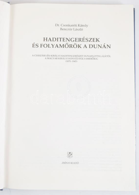 Csonkaréti Károly - Benczúr László: Haditengerészek és folyamőrök a Dunán. A Császári (és) Királyi Haditengerészet Dunaflottillájától a Magyar Királyi Honvéd Folyamerőkig (1870-1945). Bp., [1991], Zrínyi, 291+(1) p. Fekete-fehér képekkel illusztrálva. Kiadói kartonált papírkötés