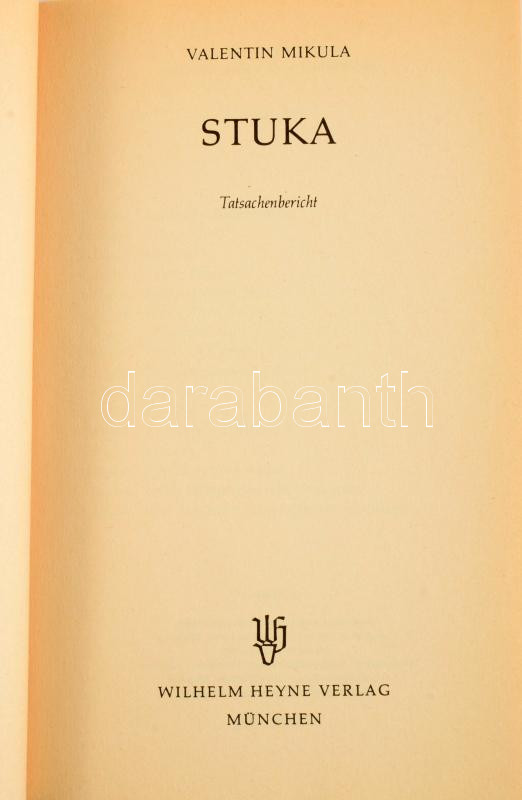Valentin Mikula: Stuka. Tatsachenbericht. München,1981., Wilhelm Heyne. Német nyelven. Fekete-fehér képanyaggal illusztrált. Kiadói papírkötés.