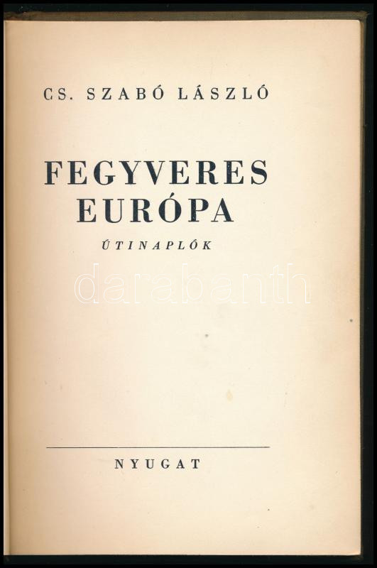 Cs. Szabó László: Fegyveres Európa. Útinaplók. Bp., [1939], Nyugat, Első kiadás. 138p. Egészvászon kötés, kopottas állapotban.