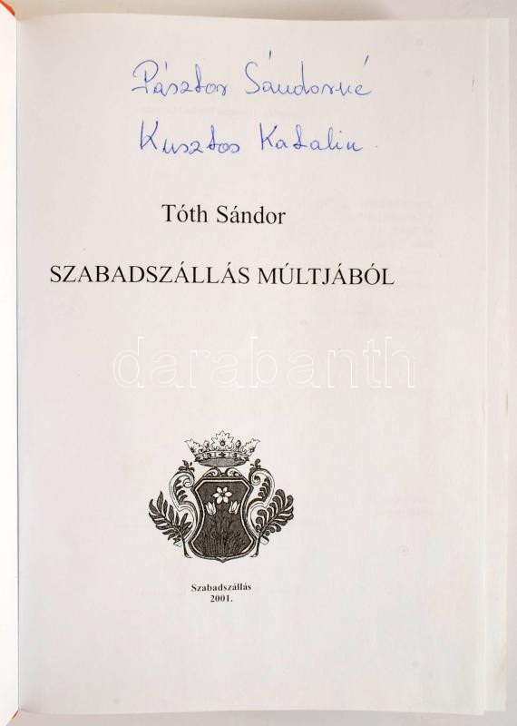 Tóth Sándor: Szabadszállás múltjából. Szabadszállás, 2001, Szabadszállás Város Önkormányzata, 665+[7] p. Kiadói kartonált papírkötés, tulajdonosi névbejegyzéssel.