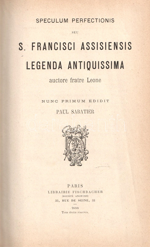 Speculum perfectionis seu S. Francisci Assisiensis Legenda Antiquissima, auctore fratre Leone. Nunc primum edidit Paul Sabatier.