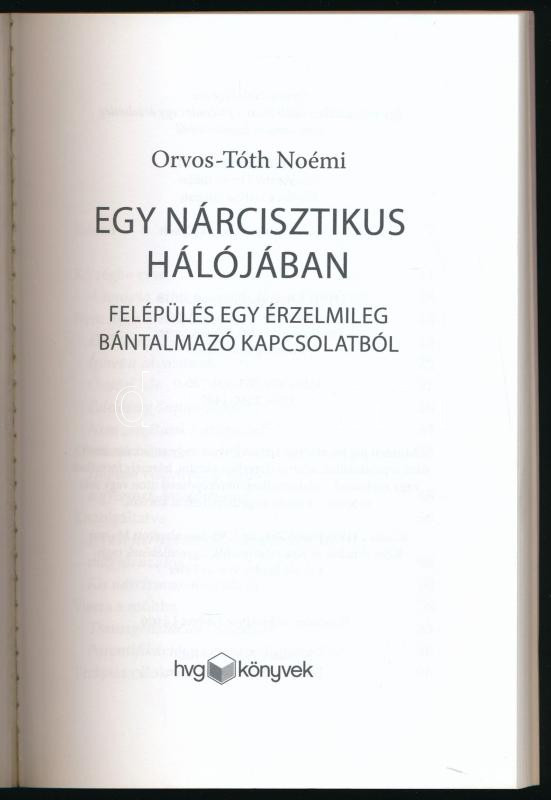 Orvos-Tóth Noémi: Egy nárcisztikus hálójában. Felépülés egy érzelmileg bántalmazó kapcsolatból. Bp., 2018, HVG Könyvek. Kiadói papírkötés.