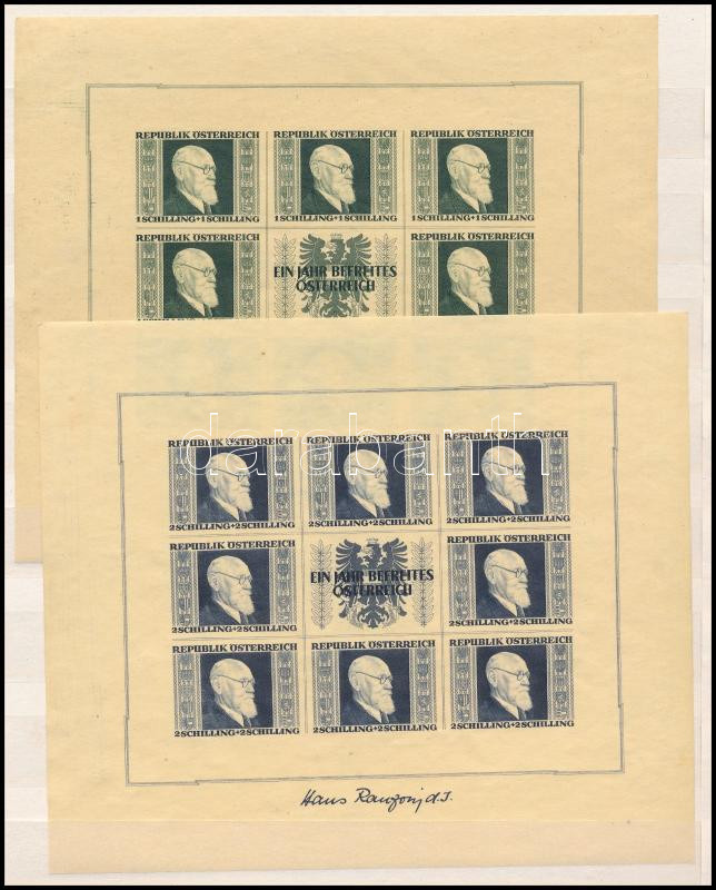 Ausztria 1946 Renner vágott kisívsor japán papíron. Luxus minőség!! (Mi EUR 2.400.-)