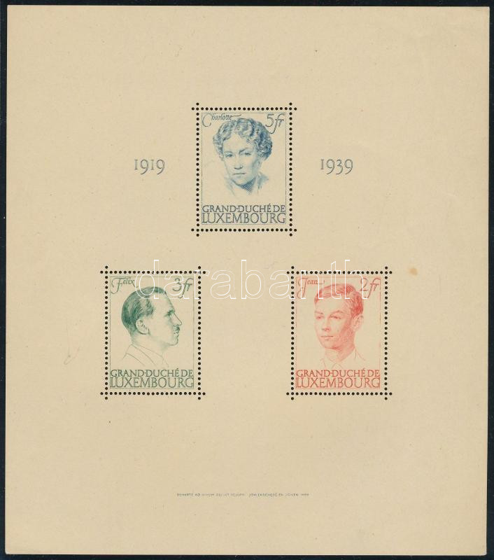 Luxemburg 1939 Mi blokk 3 kis papírhiba az előoldalon (Mi EUR 120.-)