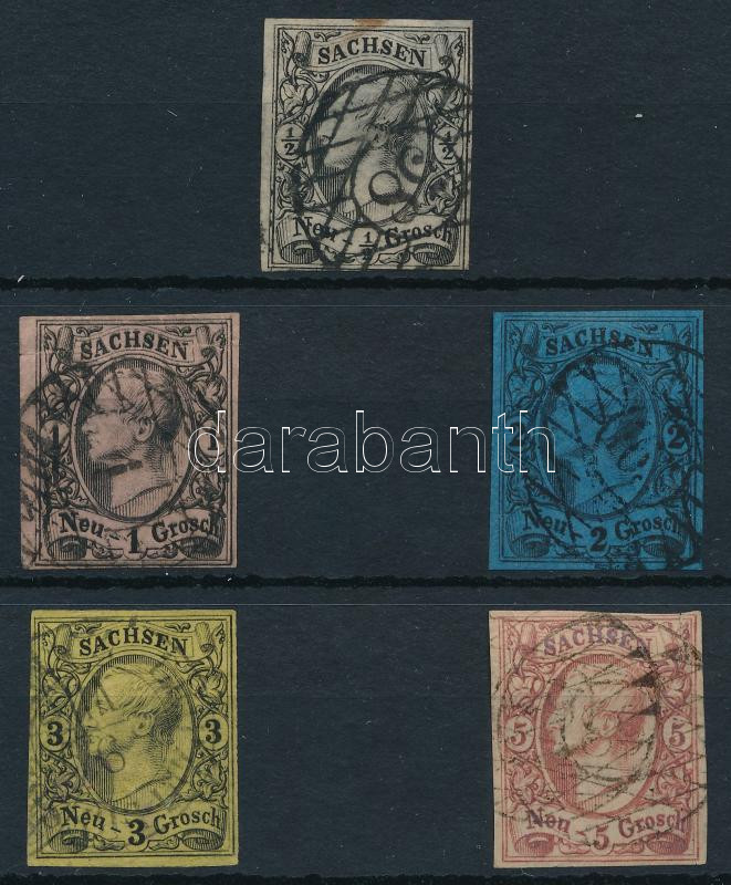 Német államok - Sachsen 1855-1863 Forgalmi bélyegek Mi 8 II + 9 + 10 + 11 + 12a (Mi EUR min 133.-)