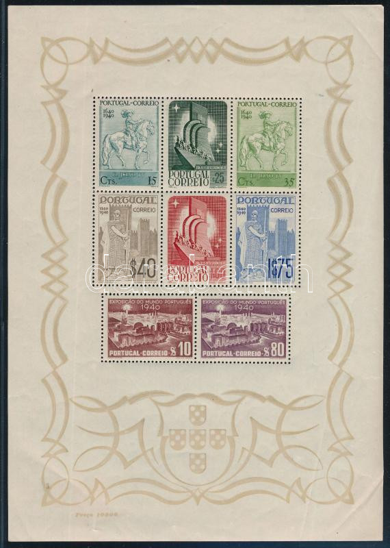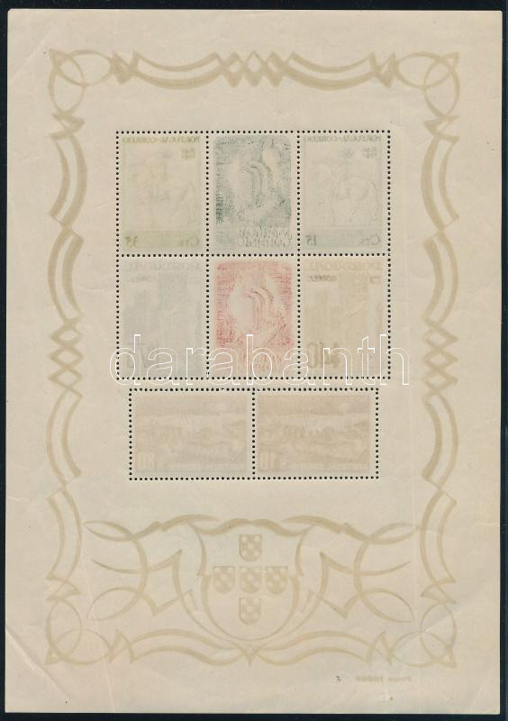 Portugália 1940 Mi blokk 2 kereten gumitörések, ritka! (Mi EUR 380.-) (folded)