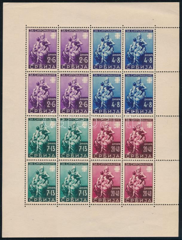 Szerbia Német megszállás 1942 Mi 82-85 kis betapadások, nagyon ritka ív! (Mi EUR 450.-)