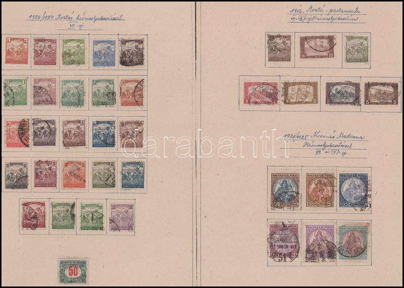 79 db hármas lyukasztású bélyeg albumlapokon