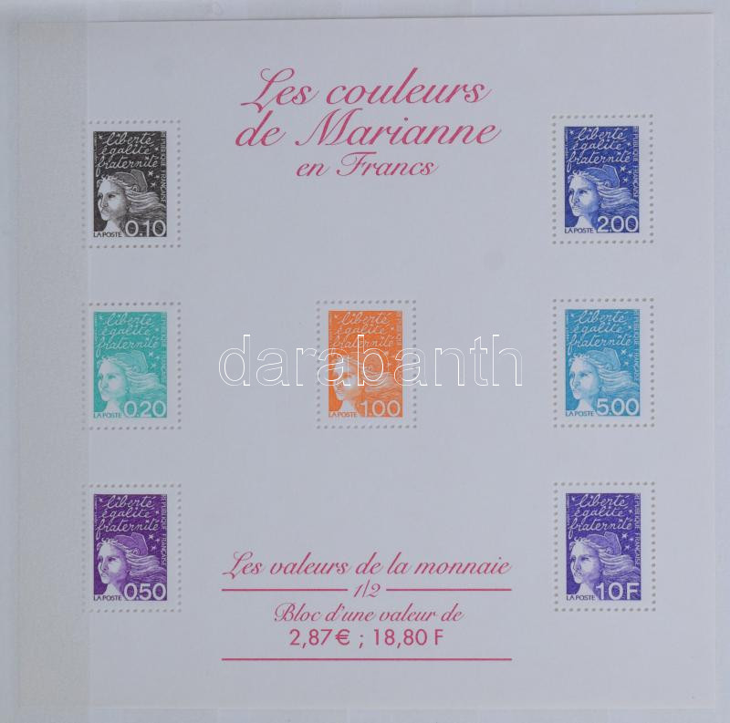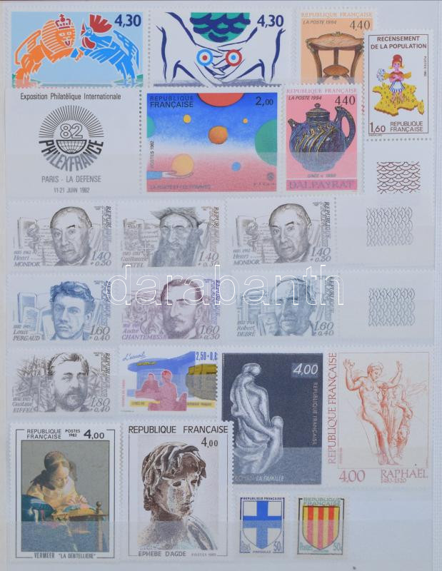 Franciaország kis tétel 6 lapos közepes berakóban, közte kevés 1960 előtti bélyeg, valamint kb 180 Frank névértékű modern anyag 2 db blokkal