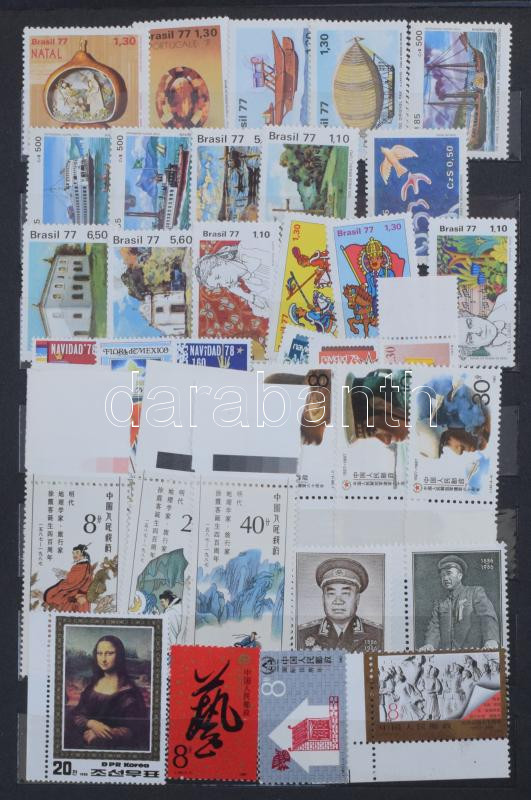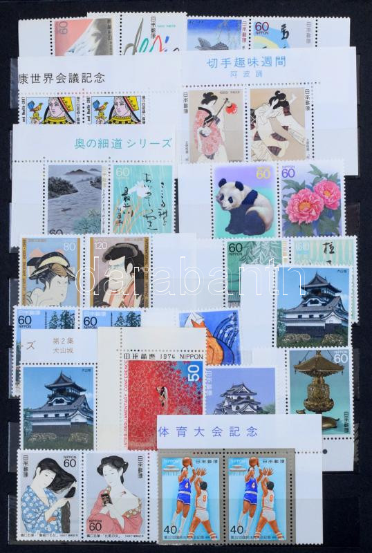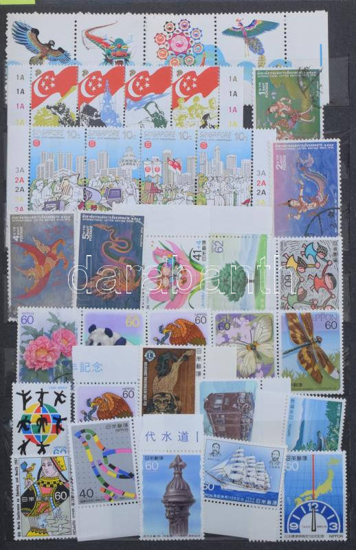 Kb 7.000 yen névértékű modern japán bélyeg + egyéb tengerentúli bélyegek Kína, Szingapúr, Mexikó, stb. és kevés számolatlan külföldi, 6 lapos közepes berakóban