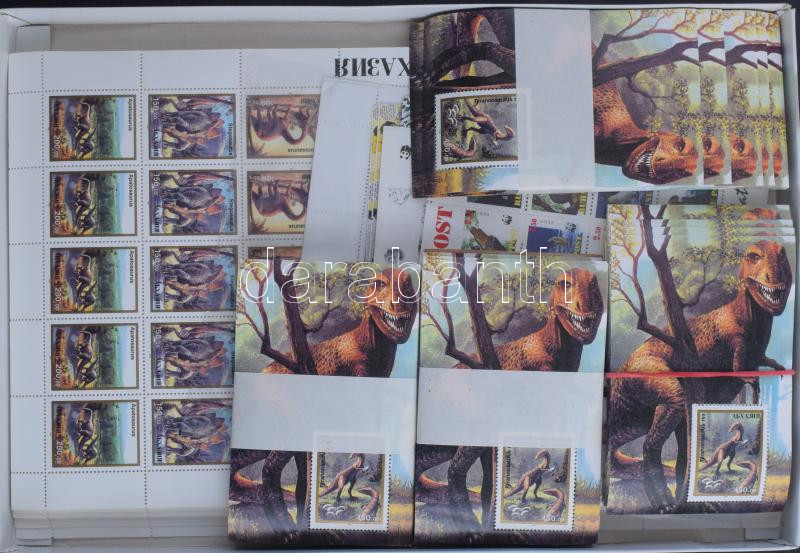 Kereskedői hagyaték: FÁK helyi kiadások, 44 db kisív + Abházia helyi kiadás, 270 db sor teljes ívekben + 375 db blokk, lapos dobozban