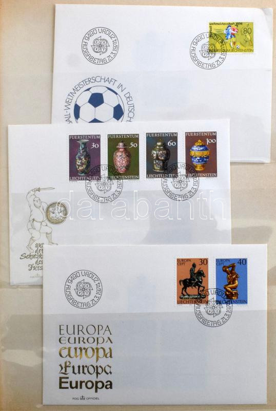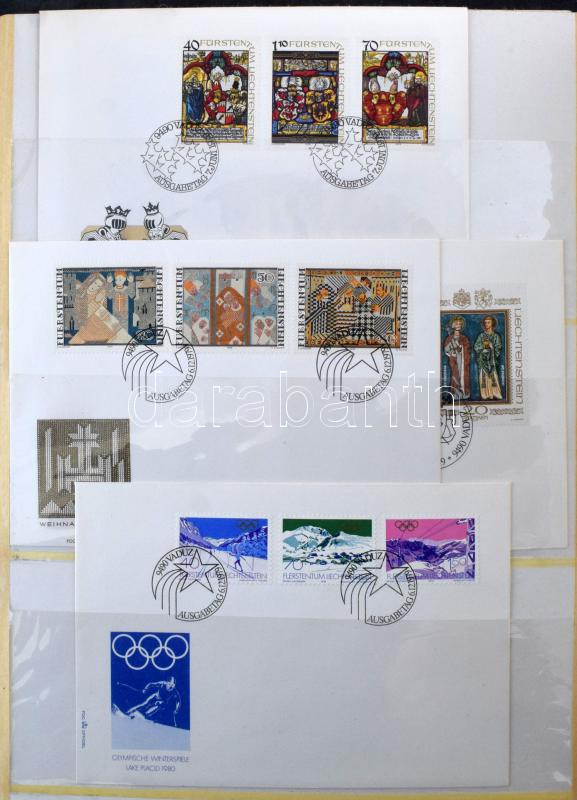 Liechtenstein szép gyűjtemény és közel 200 darabos FDC gyűjtemény a 60-as 80-as évekből KABE albumban (ebben kevés korábbi bélyeg is) és Abria blokkberakóban