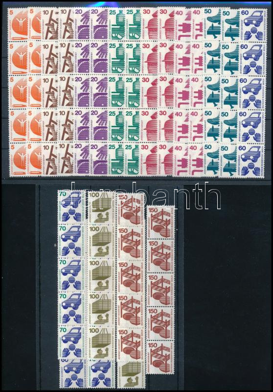 Németország Berlin 1971-1974 Mi 402-411 + 453 ellenőrzőszámos automatabélyegek ötös csíkokban, 2 példányban (Mi EUR 212.-)