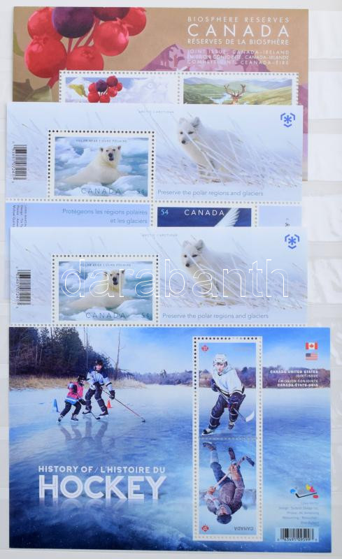 USA, Kanada bélyegek 10 lapos közepes Schaubek berakóban, benne sok modern postatiszta blokk, kisív
