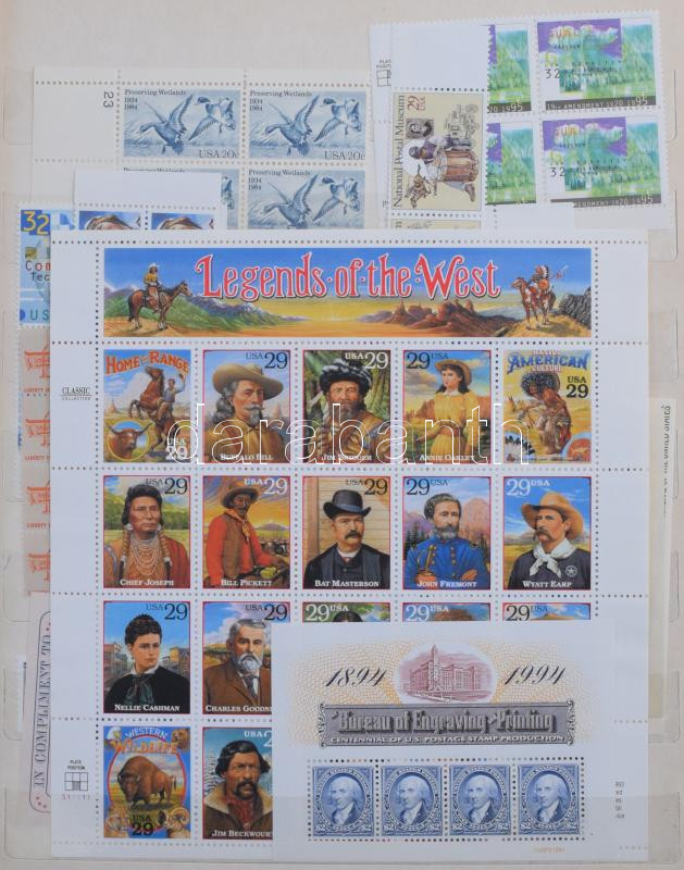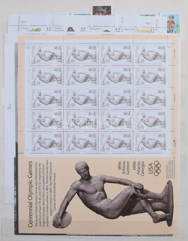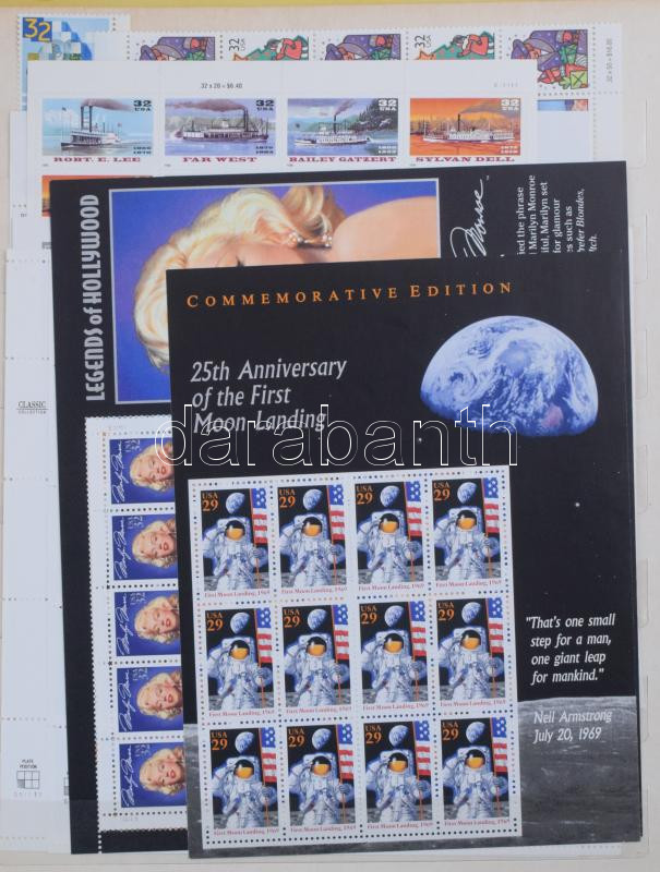 USA gyűjtemény, benne régiek is, légiposta, sorok, blokk, de sok pecsételt légiposta bélyeg is, A4-esnél nagyobb berakóban