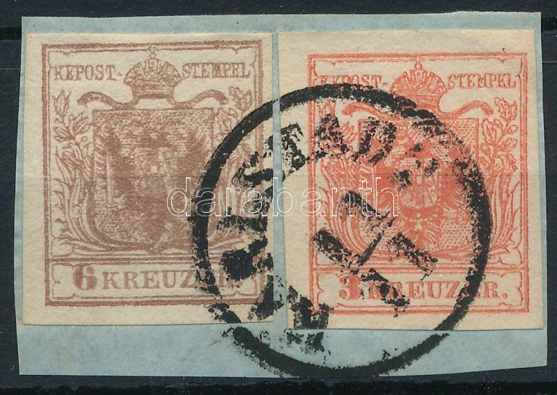 1850 3kr HP III üreges nyomat + 6kr HP I kiemelt középrész kivágáson "KARLSTADT"