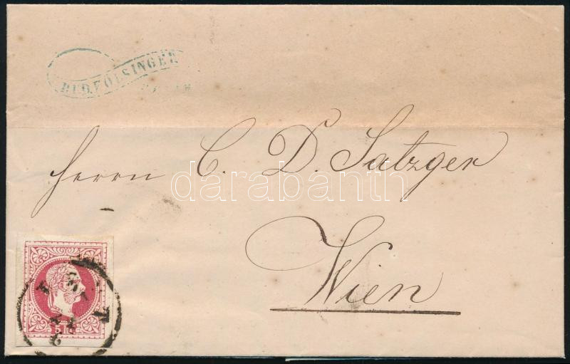 1867 Komplett levél 5kr díjjegyes kivágással bérmentesítve "PEST" - "WIEN" Certificate: Puschmann
