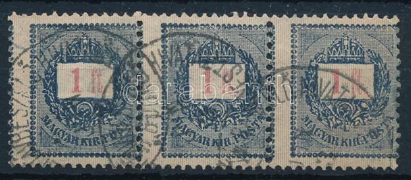 1889 1Ft hármascsík nagyon látványosan elfogazva