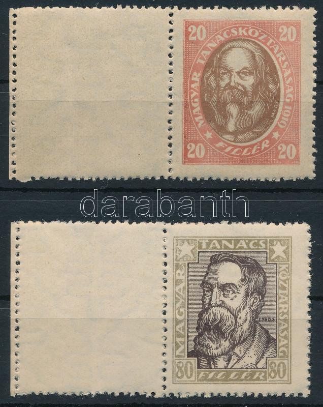 1919 Magyar Tanácsköztársasági arcképek 20f és 80f álló vízjellel, bal oldalt üres mezőkkel (110.000)