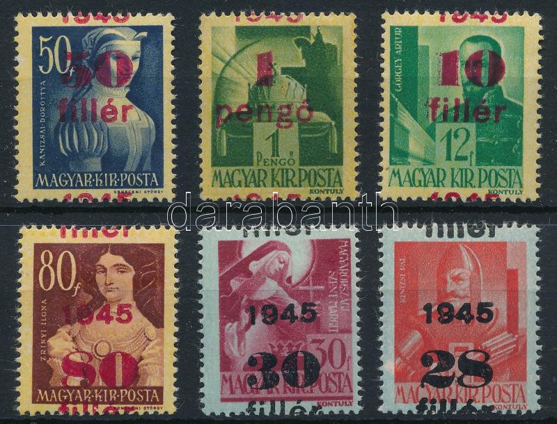 1945 Kisegítő 6 db bélyeg elcsúszott felülnyomással
