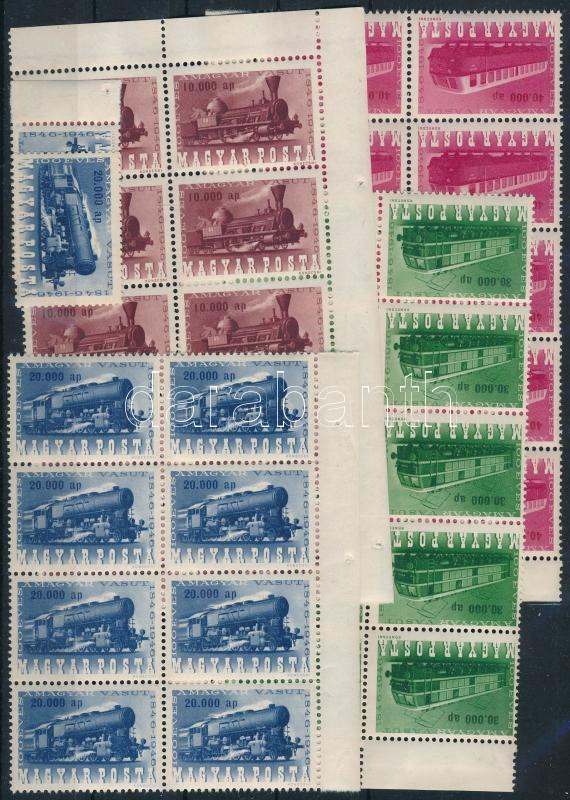 1946 Vasútjubileum sor tízestömbökben, a 20.000ap nyolcastömbben + 2 darabban (48.000)