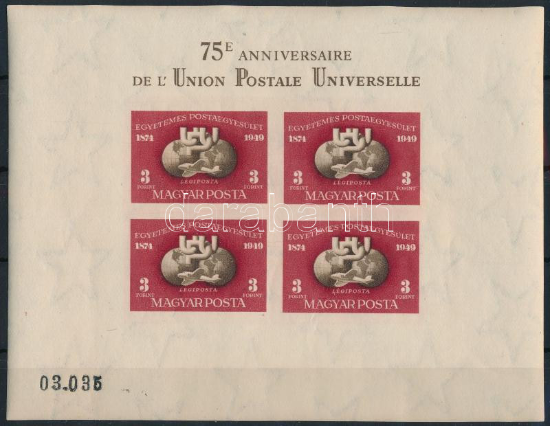 1950 UPU vágott blokk (220.000) (apró ráncok / small creases)