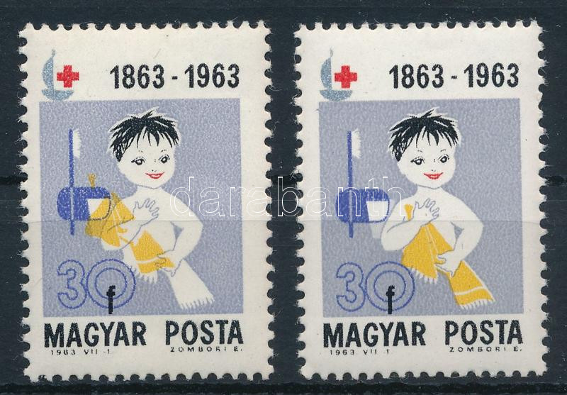 1963 Vöröskereszt (V.) 30f látványosan eltolódott sárga színnyomattal + támpéldány