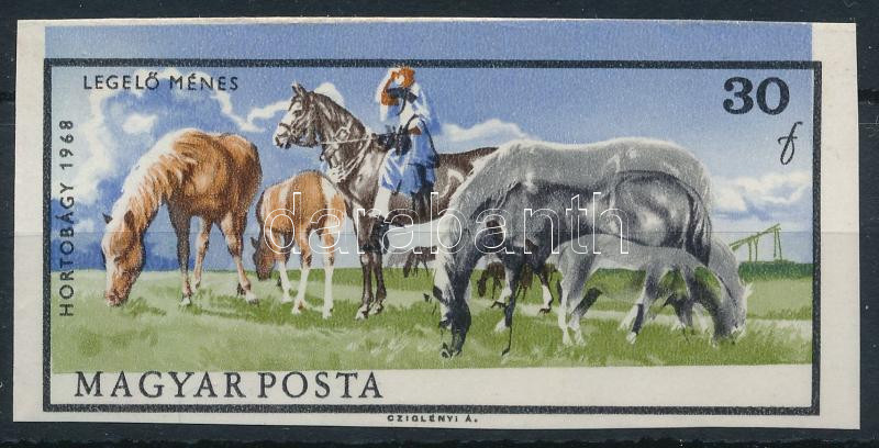 1968 Hortobágy 30f vágott bélyeg a fekete szín elcsúszásával (ujjlenyomatok / fingerprints)