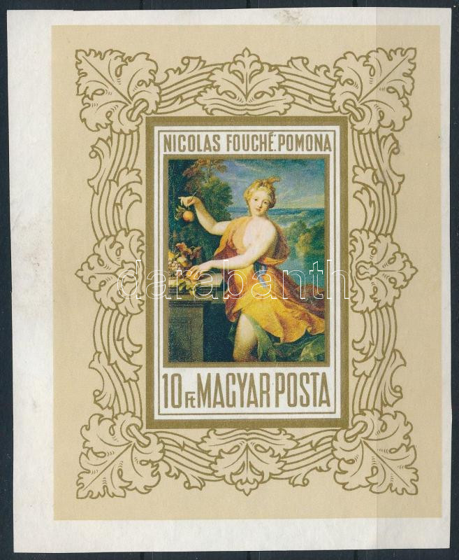 1969 Festmény, az eredeti ívből származó vágott blokk gumi nélküli papíron (sérülés a képoldalon / damaged front)