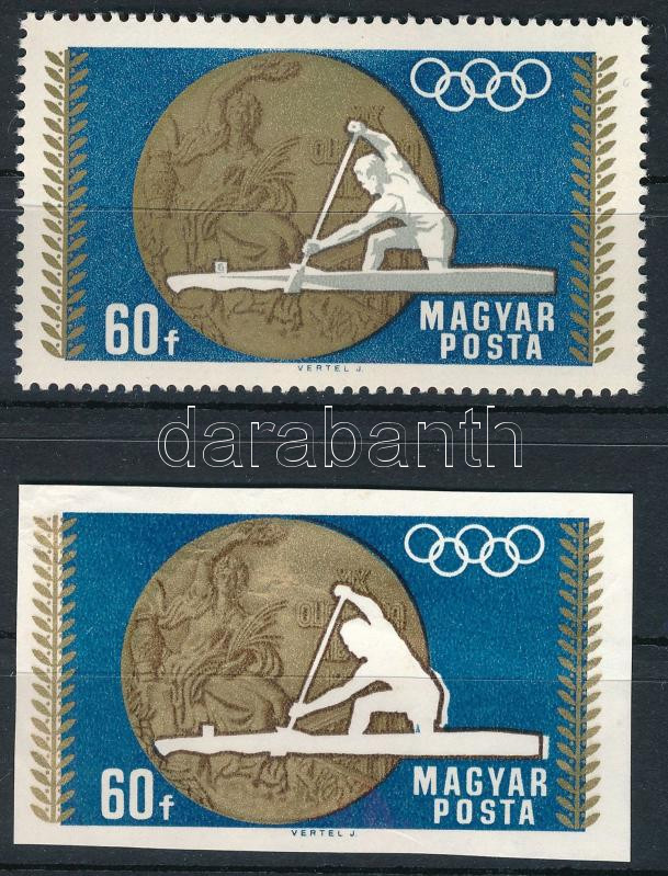 1969 Olimpiai érmesek 60f vágott fázisnyomat gumi nélküli papíron, ezüst színnyomat nélkül + támpéldány (ráncok / creases)