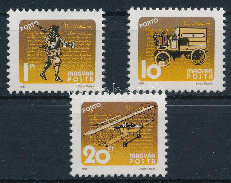 1987 Portó (Postatörténet) 1Ft, 10Ft és 20Ft bélyeg matt gumizással (26.000)