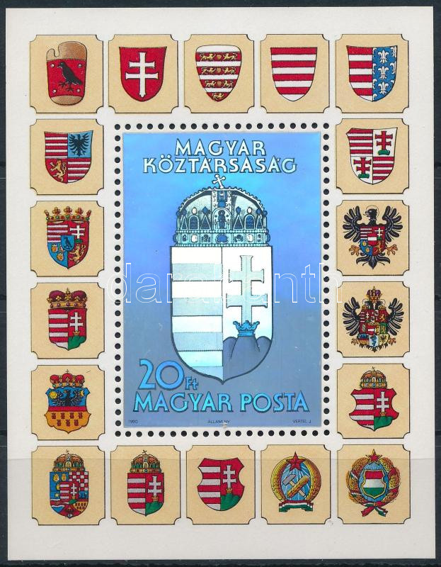 1991 A Magyar Köztársaság címere (II.) hologramos blokk fekete sorszámmal (50.000)