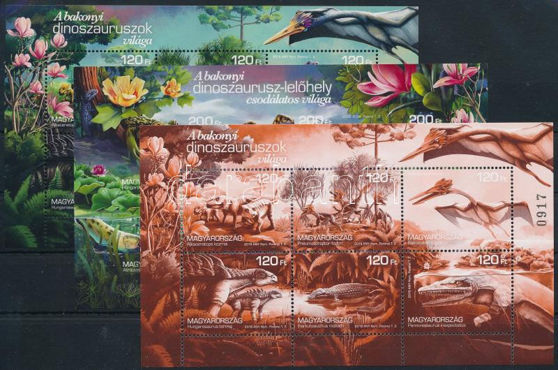 2018-2020 A bakonyi dinoszauruszok I. és II.: 3 klf blokk, sima + egyszínű + vágott (22.550)