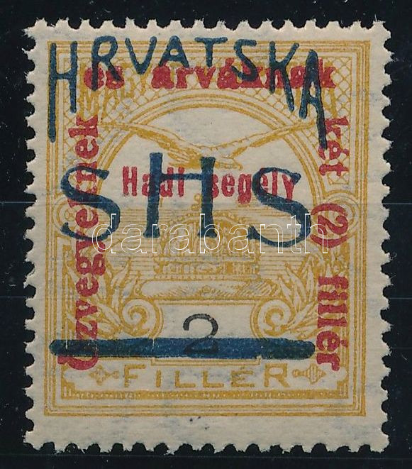 SHS 1918 Hadisegély 2f próbanyomat. Signed: Bodor