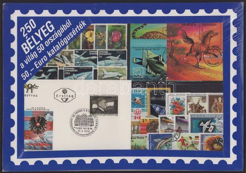 250 db bélyeg a világ 50 országából bontatlan csomag