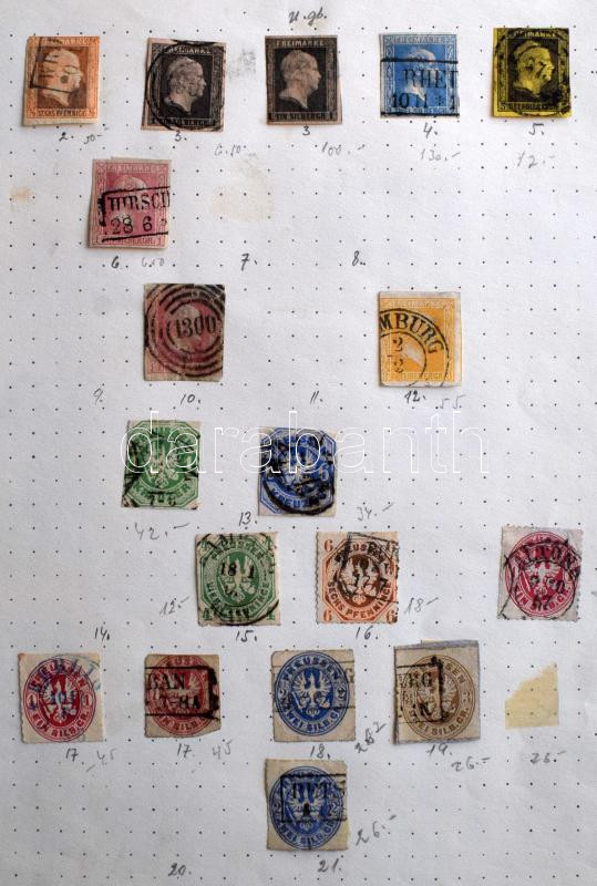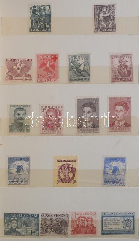 Vegyes hagyatéki tétel, benne postatiszta csehszlovák sorok és blokkok, postatiszta és bélyegzett magyar sorok és 2 blokk az 50-es évekből, német államok, Deutsches Reich, Dánia gyűjteménykezdemények albumlapokon, 6 db kisebb-nagyobb berakóban és albumban
