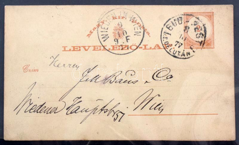 1877-1985 42 db díjjegyes levelezőlap, boríték, zömmel futott, jobbakkal, levél berakóban