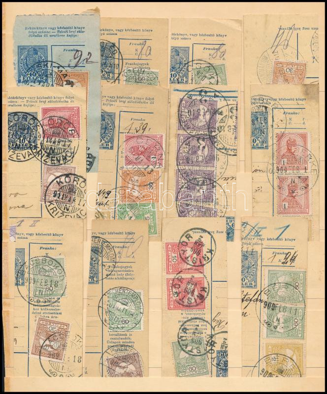 1909-1911 12 db csomagszállító szelvény szép / olvasható bélyegzésekkel