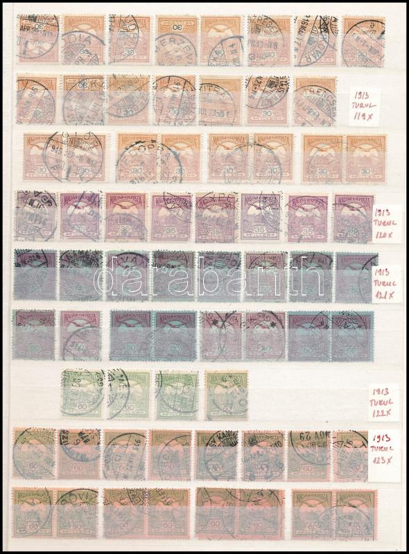 1913-1915 Turul, Árvíz, Hadisegély bélyegek 5 db A/4 berakólap mindkét oldalán