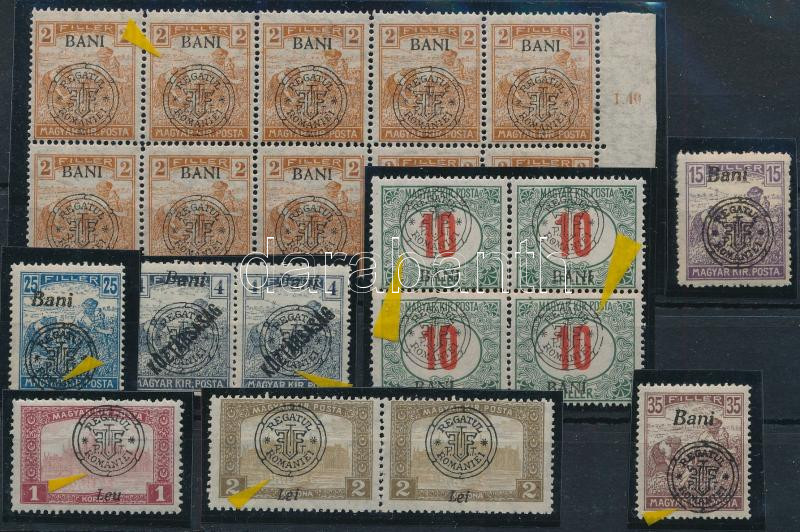 1919 Kolozsvár és Nagyvárad megszállási bélyegek "hurkás kör" lemezhibával stecklapon, Bodor vizsgálójellel
