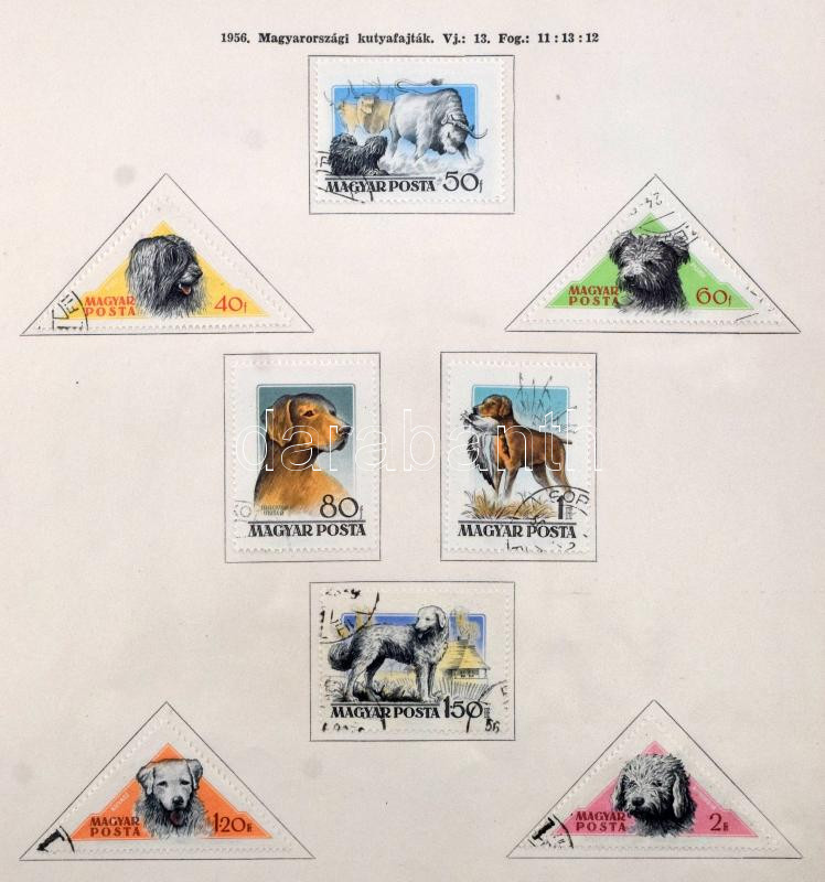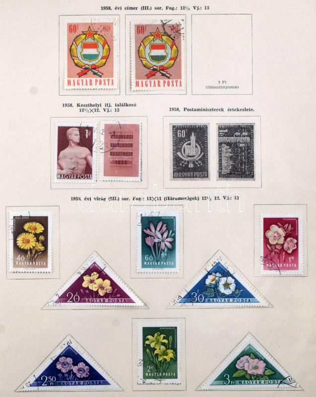 1945-1961 Magyar albumlapok levágott jobb széllel lefűzve, benne gyenge alapgyűjtemény