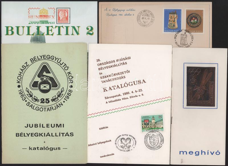 Emléklapok, bélyeggyűjtési és egyéb nyomtatványok, bélyeg ismertetők, meghívók