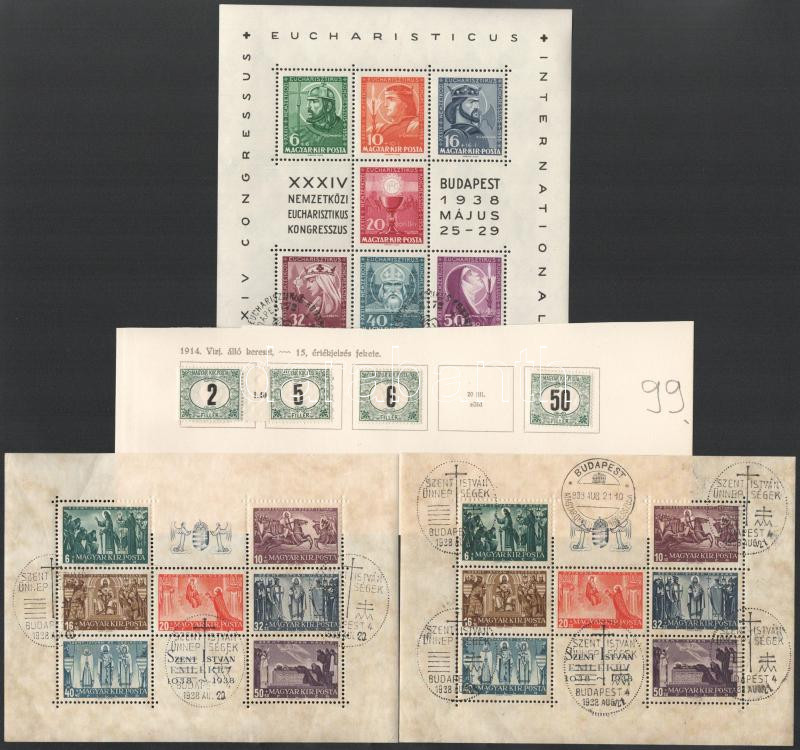 Gyűjteménymaradvány, benne portók és 3 db 1938-as kiadású blokk