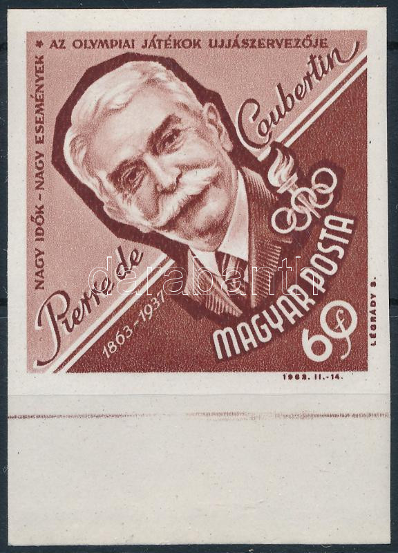 1963 Nagy idők - Nagy események P. de Coubertin vágott ívszéli bélyeg