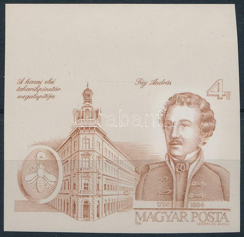 1986 Fáy András vágott szelvényes ívszéli bélyeg