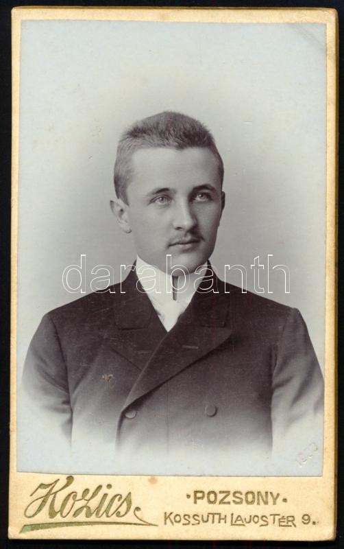 1903 Fiatalember portréja, vizitkártya ifj. Kozics Ede pozsonyi műterméből, 10,5x6,5 cm