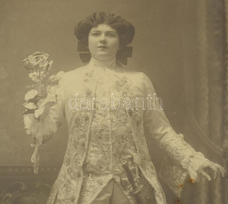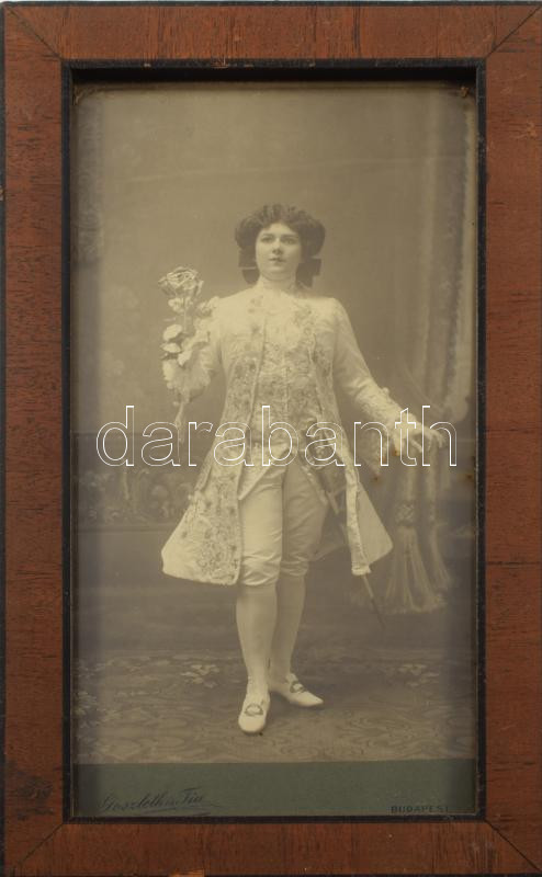 ca 1901 Fedák Sári (1879-1955) színésznő, mint Bob herceg, keményhátú kabinetfotó Strelisky műterméből, 11x21 cm Üvegezett keretben