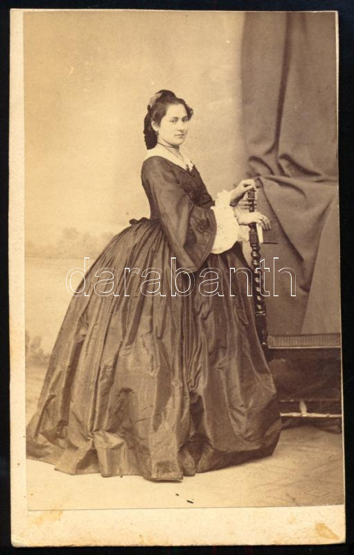 cca 1860 Wetheimer Jakabné Herzog Borbála (1846-1915), keményhátú fotó Schmidt székesfehérvári műterméből, 10,5×6,5 cm